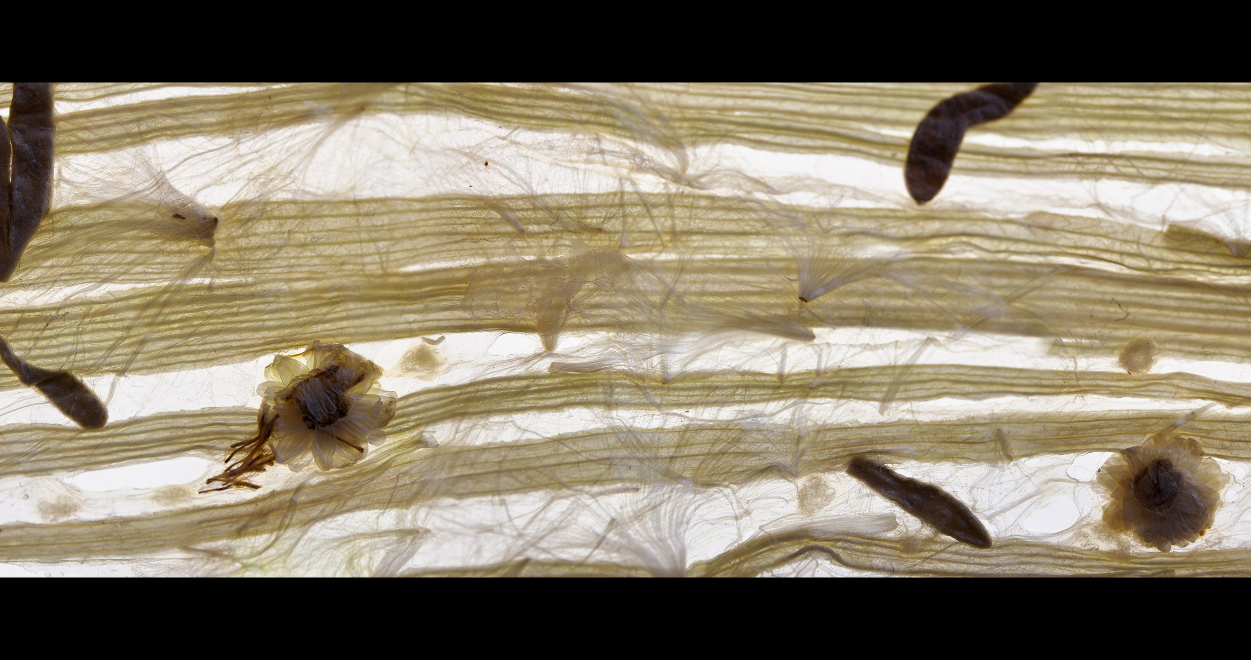 Ce paysage, évoqué par des projections de plantes et matières naturelles, embrasse et donne naissance à sa rivière, cours d’eau de tissu finement perlé des motifs centraux du wampum de la prophétie des Sept feux auquel il fait référence. La rivière des Sept feux devient ainsi lieu de rencontre et de partage – autant pour les délicats personnages en cosse de maïs qui y sont mis en scène que pour nous, spectateur·ice·s qui longent sa rive.